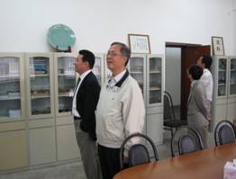 President of Chinese Ceramic Society (CCS) Mr. Zhang Renwei, the Secretary General of CCS Mr. Jin Zhanping, Vice Secretary of CCS Mr. Liu Jie and Tan Fu visited Shanghai Institute of Ceramics Chinese Academy of Science (SICCAS) and Shanghai Ceramic Society (SCS) on May 12th, 2007. They were warmly received by the director of SICCAS Mr. Luo Hongjie, Vice Director of SICCAS and President of SCS Mr. Chen Lidong and other leaders of SICCAS. Director of SICCAS Mr. Luo Hongjie and President of SCS Mr. Chen Lidong accompanied the leaders of CCS to visit some laboratories and showroom of SICCAS and then SCS. The Secretary General of SCS Mr. Zhang Shen briefly introduced recent situation of SCS to the leaders of CCS. They fully affirmed the achievements of SCS and they are particularly grateful to SICCAS for its powerful support.
