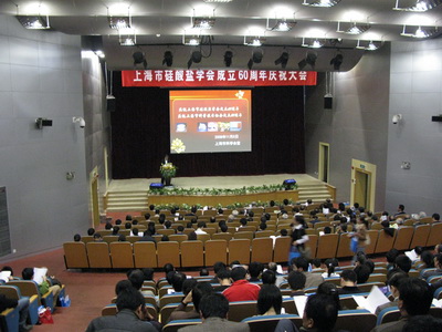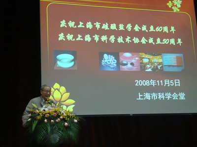 Cerebration meeting for 60th anniversary of founding of SCS was held on Nov. 5th 2008 in Shanghai. Many famous specialists and leaders, such as Academician of Chinese Academy of Sciences and Chinese Academy of Engineering, Honorary President of SCS Mr. Yan Dong-sheng, Academician of Chinese Academy of Sciences and Honorary President of SCS Mr. Guo Jingkun, Academician of Chinese Academy of Sciences and Research Fellow of Shanghai Institute of Optics & Fine Mechanics Chinese Academy of Sciences Mr. Jiang Zhonghong, Academician of Chinese Academy of Engineering and Research Fellow of Shanghai Institute of Ceramics Chinese Academy of Sciences Mr. Jiang Dongliang, Vice President of Chinese Ceramic Society and Director of Shanghai Institute of Ceramics Chinese Academy of Sciences Mr. Luo Hongjie, Vice President of Shanghai Association for Science and Technology Mr. Hu Jialun, Secretary-General of Chinese Ceramic Society Mr. Jin Zhanping, Director of Academic Department of SAST Mr. Lin Wei, President of Shanghai Ceramics Association Mr. Song Lixin, Vice President of Chinese Cement Association Mr. Zhuge Peizhi, Honorary President of Shanghai Entrepreneuress Union Madam Zheng Lizhen, and President SCS Mr. Chen Lidong, as well as all the vice presidents, executive council members, council members, etc. attended this cerebration meeting. The leaders of each group member and a great number of individual members about 350 persons in all participated in this meeting.