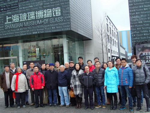 According to the deployment of “Active Day of membership of SAST”, SCS organized over 30 members to visit Shanghai Glass Museum on Dec. 18th, 2013. At first, they visited hot glass exhibiting area to learn glassware making process and then visited glassware show rooms. They stayed in the showroom, as if they were in a palace of art. The unique decoration and creative design made every visitor exciting and surprising. There not only exhibited ancient colored glaze products, but also modern glass materials for high-tech applications. Both Chinese artistic glass masterpieces and foreign excellent fine glassware can be found there. Not only traditional glass blowing wares, but also many new products, such as, laser glass, glass fibre etc. manufactured by modern equipment and high technology are shown in show rooms.