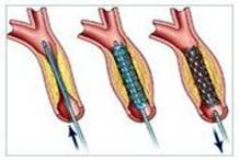 图1 阻塞的动脉 图2 介入治疗示意图