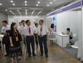 2010年8月9日上午,中国硅酸盐学会张人为理事长、晋占平秘书长一行在出席“第16届国际晶体生长与材料大会”开幕式后,专程来到会议的展览厅,参观第16届国际晶体生长大会的展览会。