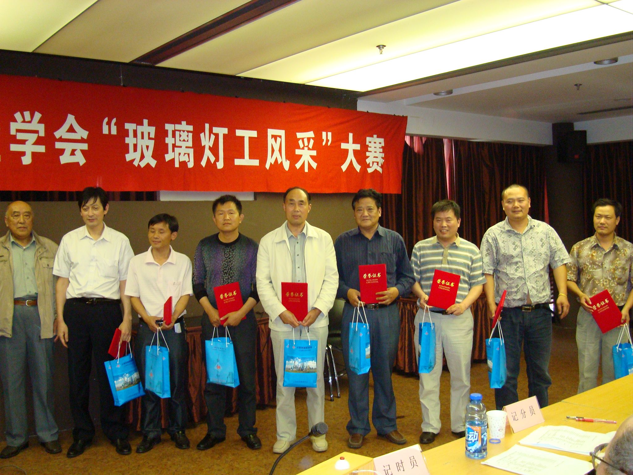 活动结束后,评选出了参赛的优胜奖,并颁发了证书。最后,学会张申秘书长和玻璃灯工专委会赵承基主任分别做了总结发言。他们在发言中都提到:举办这次活动的宗旨是为了提高玻璃灯工的综合能力。现在国家急需有实际操作经验、动手能力强的技术工人。玻璃灯工也不例外,眼下,许多企业都竞相招聘新人上岗,期望他们能尽快上手,驾轻就熟,为企业生产出力。但事实上,很多年轻的玻璃灯工只知道实际操作,缺乏必要的基础知识。而很多企业老总也只需要能做活,增长企业效益的人。长此以往,会对企业带来负面的影响。通过举办这类活动,来激发年轻技工们的学知热情,来倡导如何作一名合格的新时代技术工人,真正做到应知应会适应社会发展的需求。