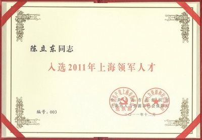 根据相关上海市领军人才文件的精神,2011年5月上海市开展了第六批领军人才的选拔工作。近日,上海市委组织部、上海市人力资源和社会保障局研究公布了2011年上海领军人才“地方队”培养计划人选名单,中国科学院上海硅酸盐研究所陈立东研究员入选2011年上海领军人才,并获得25万元领军人才专项资金资助。(摘自:sic.ac.cn网)
