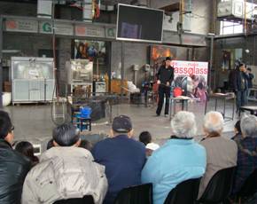 时值严冬,虽然北风呼啸,气温骤降,但会员参与活动的热情却很高涨。下午1点30分,会员们准时到达集合地点,乘车前往上海玻璃博物馆。经过半个多小时的车程,顺利到达了玻璃博物馆。下车后,大家先去设在展示大厅外的热玻璃演示区,现场观看热玻璃样品的制作过程。尽管有的会员熟悉玻璃的物化性能,也谙知热玻璃制作工艺方法,但在现场,会员们自始至终都聚精会神地观看工艺师的演示。看完了热玻璃展示区,大家又跟随讲解员去玻璃博物馆展示大厅参观。