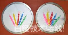 图2:上面放蜡烛,从下面用加热器加热到110℃。左边的PP与二氧化硅气凝胶复合隔热材料(2mm厚)上的蜡烛没有融化。右边相同厚度的PP发泡体上的蜡烛融化了。(点击放大)