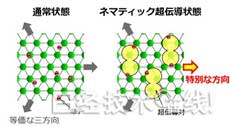 该物质的构造中有3个等价方向,原本预想的是,将磁场朝着这些等价方向时,比热的大小是相同的,会发生以60度(有时是120度)为周期的振动。但结果发现,此次观测到的周期比预期的周期要长,可以保持超导状态的最大磁场(上部临界磁场)也会对磁场方向发生以180度为周期的振动,因此在三个等价方向中,超导对的结合强度会在其中一个方向上减弱,从而实现了向列超导。