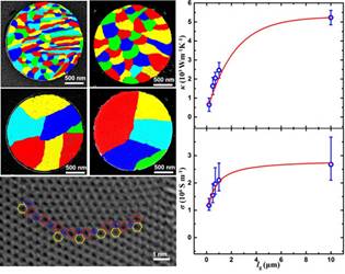 晶界是化学气相沉积(CVD)方法制备的大面积石墨烯薄膜中普遍存在的缺陷。深入理解晶界对石墨烯的电学和热学性质的影响对发展基于石墨烯的电子、光电和热电器件具有重要意义。尽管目前对于单个晶界对石墨烯性质影响的研究较多,但宏观尺度上晶粒尺寸对石墨烯电学和热学性质的影响尚不清楚。其主要原因是基于传统的析出(镍基体)或表面吸附生长(铜基体)机制的CVD生长方法无法在大范围内调控石墨烯的晶粒尺寸,制备晶粒尺寸小于电子和声子平均自由程(约1微米)的小晶粒石墨烯尤为困难。