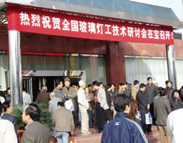 ※National Glass-working Technology Symposium was held on Nov. 15~17th, 2005 in Baoying County, Jiangsu Province. There were 146 specialists and enterprise representatives attending this symposium, which was presided over by Mr. Zhao chengji — the headman of glass working group of Ordinary Inorganic Materials Committee of Shanghai Ceramic Society. The Secretary-General Mr. Zhang Shen and the head of Baoying County Mr. Wang Yeming also took part in this symposium and made their presentation. Eight specialists including Mr.Cai Chengliang from Lanzhou University, Mr. Zhao Chengji from Shanghai Kangda Glass Device Research Institute presented their technical reports.