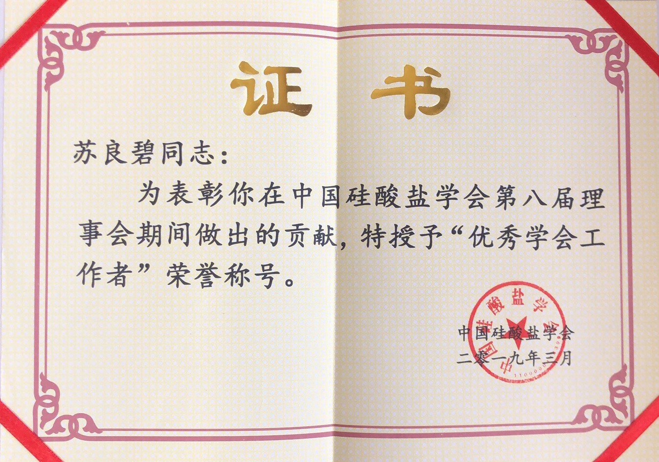 为鼓励在学会第八届理事会期间做出优异成绩的先进集体和个人,大会表彰了中硅会9个分会和4个地方学会先进集体,39位优秀学会工作者,我会被评为中国硅酸盐学会先进集体,副理事长宁伟教授、学术交流工作委员会主任苏良碧研究员荣获“优秀学会工作者”称号。我会推荐的上海硅酸盐所博士毕业生徐颖峰(导师:施剑林研究员,论文题目:基于TiO2功能改性的新型光催化体系设计与构筑研究)获得了第二届“中国硅酸盐学会优秀博士学位论文奖”。