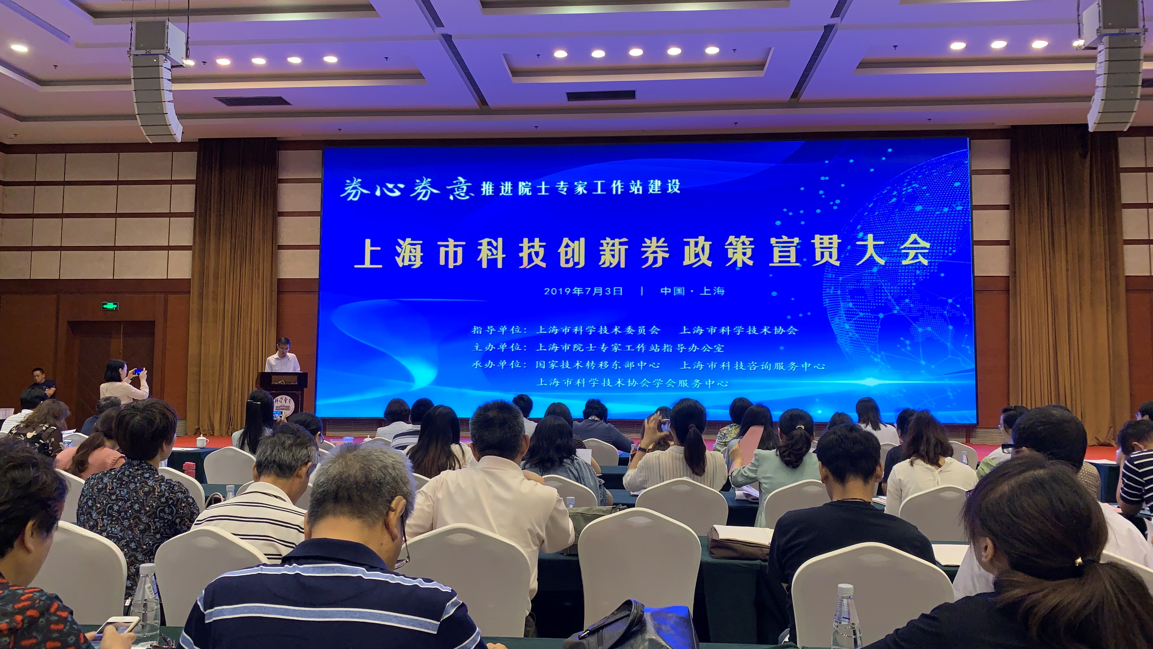 7月3日下午,“券心券意”推进院士专家工作站建设——上海市科技创新券政策宣贯大会在上海科学会堂国际会议厅举行。上海市科协副主席李虹鸣出席会议并致辞。市科委、市科协相关职能部门、直属事业单位、国家技术转移东部中心负责人,建站企业家代表、市级学会、区科协负责同志等350余人参加会议。