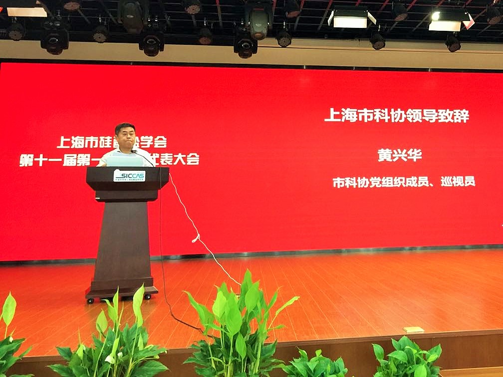 黄兴华代表上海市科协致辞,他指出上海市硅酸盐学会是我国无机非金属材料行业具有重要影响的一支学术团体,第十届理事会团结动员和组织广大会员和科技工作者,做了大量卓有成效、彰显学会价值的工作,促进了行业产业的发展。他对学会今后工作提出四点要求:一是强化学会学术功能,更好地服务上海科创中心建设和长三角一体化发展;二是加强学会制度建设,以承接政府职能转移为抓手,当好政府决策的参谋;三是建好科技工作者之家,努力把学会打造成广大会员的精神殿堂和情感家园。