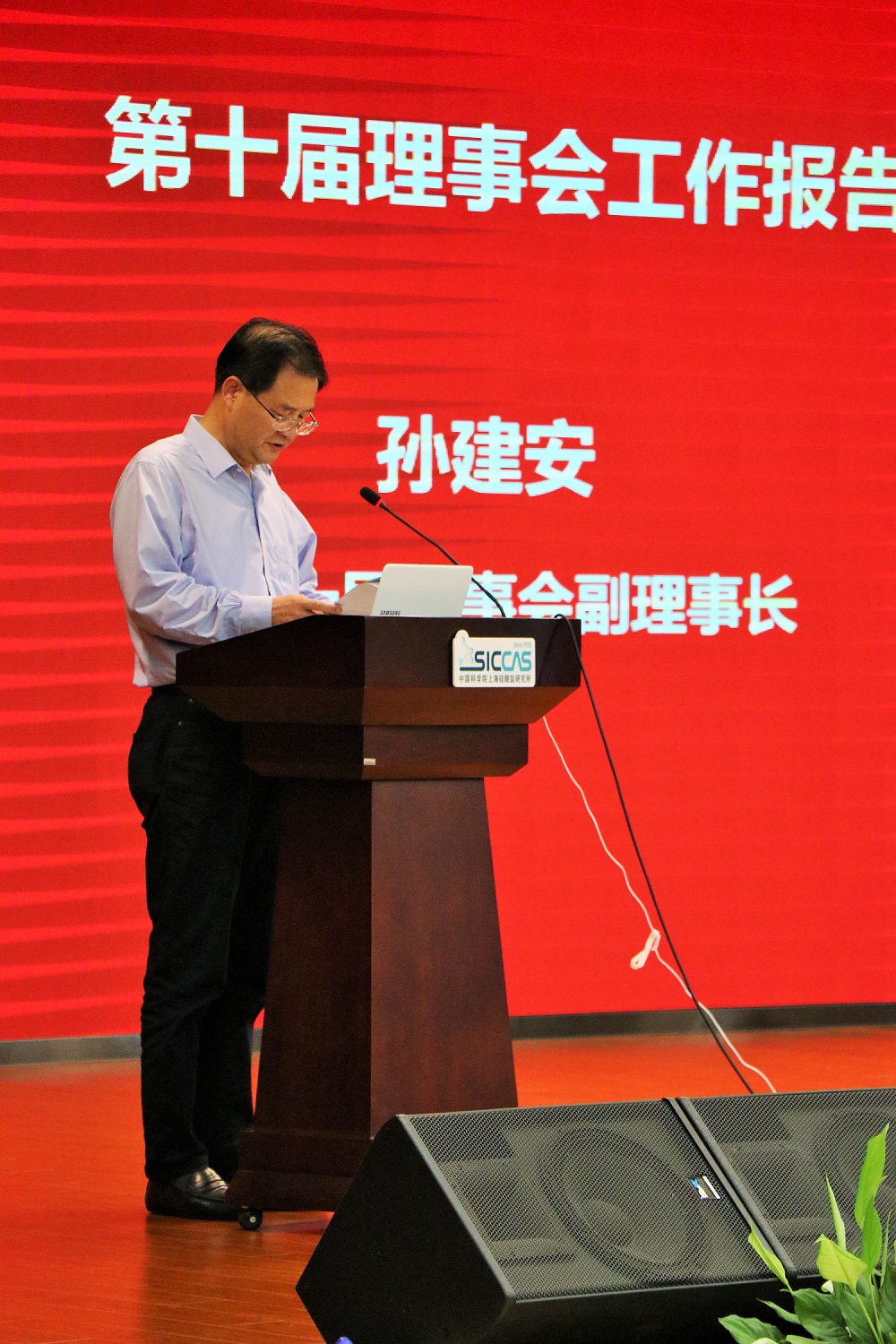 学会副理事长、同济大学王德平教授主持大会。学会副理事长、中国建材国际工程集团有限公司总裁孙建安作“第十届理事会工作报告”,报告从七个方面总结了学会五年来在加强党建引领、打造学术活动品牌、主办高端行业展会、促进硅酸盐科普教育、培养举荐和激励优秀科技人才、创新专项服务承接政府职能转移、加强学会自身建设方面所取得的成绩以及对学会工作的经验体会,并对学会今后工作提出了中肯建议。大会听取审议并通过了副理事长、东华大学宁伟教授作的“关于修改学会章程的说明”、“上海市硅酸盐学会章程”,顾中华秘书长作的“第十届学会财务审计报告”。学会常务理事、上海大学施鹰教授介绍了第十一届理事会、监事会候选人推荐产生情况及候选名单,大会投票选举产生了第十一届理事会理事、监事会监事,当选45位理事和3位监事来自上海高校、研究所以及企事业的19家单位,其中科研院所3家,高校9家,企业7家。学会第十一届第一次理事会、监事会投票选举产生了新一届理事长、副理事长、秘书长、常务理事、监事长。上海硅酸盐研究所所长宋力昕当选理事长,同济大学教授王德平、中国建材国际工程集团有限公司马立云,上海硅酸盐研究所副所长吴成铁,上海光学精密机械研究所研究员胡丽丽,上海应用技术大学教授徐家跃当选副理事长,上海硅酸盐研究所顾中华当选秘书长,中国建材国际工程集团有限公司官敏当选监事长。