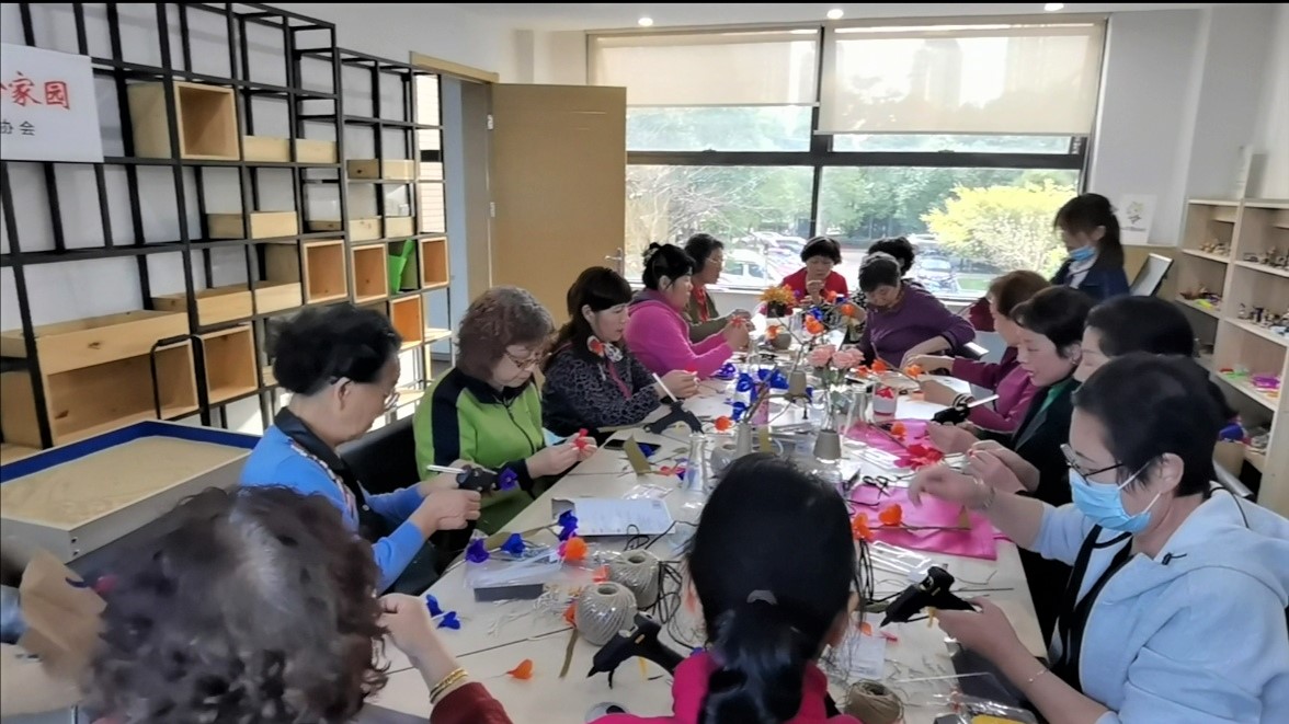 活动开始志愿者向社区居民介绍了日常生活中垃圾减量化、无害化、资源化的知识,展示讲解了废旧物品的可循环利用性,之后通过一步步边讲解边演示,如何用废旧瓶子制作装饰花瓶,废旧购物袋做成仿真花朵。邻里居民们欢聚一堂,志愿者耐心辅导,居民们互相交流合作,传授技巧,发挥各自的想象力,经过剪剪贴贴,做出了具有自己个性创意的花瓶和五彩缤纷的花束,在欢快的参与、分享和展示成果中体会到了“垃圾是放错地方的资源”。