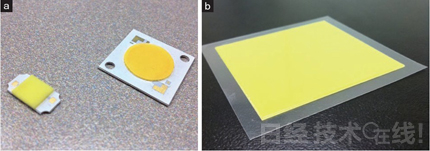 图1:采用新工艺生产的LED模块(a)以及凝胶状树脂片材(b)