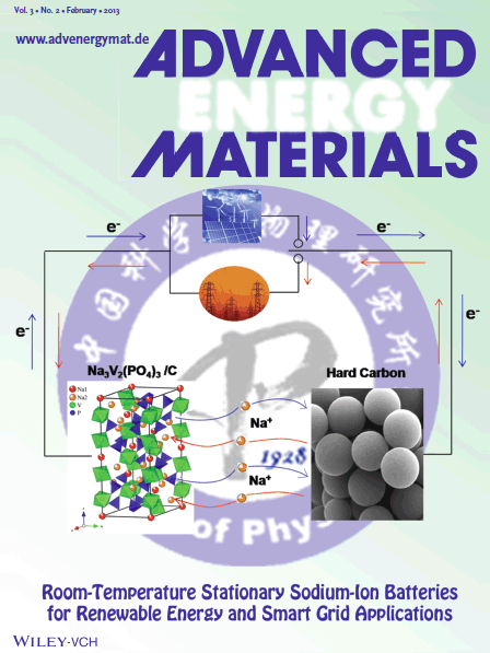 图4 文章封面:基于Na3V2(PO4)3 /C复合正极材料和硬碳负极材料的室温钠离子储能电池,用于可再生能源大规模储能和智能电网(来源:中科院物理研究所)