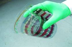 在手机背面贴一层薄膜,只要有光照能随时充电,这样的梦想有望变为现实。记者从苏州大学获悉,在博士生导师马万里教授的指导下,该校纳米科技学院研究生袁建宇带领的科研小组花费一年多时间,成功研制出了“柔性聚合物太阳能电池”,该成果已成功申请两项发明专利。“目前市面上能够见到的太阳能电池以传统的无机材料为主,这类电池产品笨重,面积较小,生产成本昂贵,而且在生产过程中消耗大量电力能源,造成了很多环境污染。与传统的半导体硅材料为主的太阳能电池最大不同的是,柔性聚合物太阳能电池可以像纸币一样任意弯曲甚至折叠,展开之后放在阳光下就可以充电,非常轻巧,携带方便。”在苏大纳米科技学院的实验室里,袁建宇向记者展示了这款外观就是一张透明塑料薄膜的新型太阳能电池板,它就像普通的纸张一张,可以弯曲成筒状等各种形状,如果仔细观察,会发现这张透明的塑料薄膜上印有一层薄薄的化学物质。不要小看这层100纳米厚度的薄膜,它是一种新型的聚合物材料,正是这款新型太阳能电池的核心,就是依靠它才能吸收到太阳能,再转换成电能。 袁建宇告诉记者,柔性聚合物太阳能电池生产工艺简单,可采用卷对卷大量生产。柔性太阳能电池什么时候能和大家见面呢?曾在美国师从2000年诺贝尔化学奖获得者、导电高分子发明人Alan Heeger教授,有超过10年的新型太阳能电池研究经历的马万里教授告诉记者,目前,课题组已经完成前期实验室的研究,正在进行产品的放大与后期工艺优化。(摘自:国际节能环保网) |