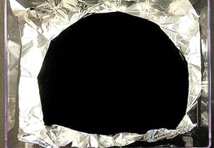 在铝箔片上培育而成的超黑材料,覆盖它的区域肉眼看起来一片平滑,但其实是褶皱的。一种新出现的“最黑”材料,仅仅反射0.035%的光,达到了肉眼根本无法分辨的程度,黑得就像出现了一个黑洞。由此创造了一项最新纪录。据英国《独立报》官方网站7月13日报道,这种“超级黑”涂层材料被命名为“Vantablack”(梵塔黑),由纽黑文公司利用碳纳米管在铝箔片上培育出来的,这种纳米管比头发细10000倍。相关成果发表在近期的《光学快报》杂志上,并在本周举行的英国范堡罗国际航展中亮相。如果凝神静气盯着“梵塔黑”涂层,你会产生一种诡异的感觉——它黑到让人完全无法理解亲眼见到的这一切,形状和轮廓都消失了,只剩下貌似无底深渊的虚空。