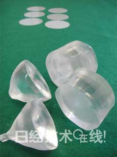 (点击放大) | 日本福田结晶技术研究所成功试制出了口径为50mm(2英寸)的ScAlMgO4(SCAM)晶体。设想用于蓝色LED元件及蓝紫色半导体激光器等GaN类发光元件的基板。与制造蓝色LED元件的基板大多使用的蓝宝石相比,SCAM更适合减少GaN类半导体的结晶缺陷,因此有望提高发光元件的亮度。据该研究所介绍,日本东北大学金属材料研究所松冈隆志教授的研究小组利用试制品层叠GaN类半导体设计了LED,证实了该材料的有用性。 SCAM的特点是与GaN的晶格失配度仅1.8%,不容易产生晶格位错这种结晶缺陷。虽然以前业内认为很难制作SCAM晶体,但福田结晶技术研究所采用CZ法试制成功了2英寸的高品质SCAM晶体。据该研究所介绍,通过改善晶体生长的条件和晶体生长炉的结构,提高了结晶品质。该研究所劈开试制出的SCAM晶体,利用X射线衍射法评估了其C面,结果发现其半幅值为12.9秒,结晶品质跟Si的完全结晶相当。 另外,该研究所不用切割和研磨加工工艺,而是利用SCAM晶体块通过劈开加工做成了晶圆。此举可降低晶圆的成本。利用有机金属化学气相沉积法使GaN薄膜在1040℃下垂直于SCAM晶体的劈开面生长,结果获得了镜面的低位错晶体。这也是一大成果。 福田结晶技术研究所今后将设法继续增大SCAM晶体的口径,还将对其进行商业化运作。福田结晶技术研究所将于2015年春季开始销售2英寸的SCAM基板。(来源;日经BP社)