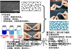 图1:PP发泡体、二氧化硅气凝胶及PP与二氧化硅气凝胶复合隔热材料的概要图(点击放大)