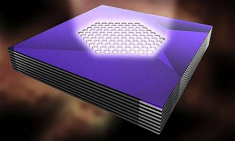 在PNAS论文中提出的集成光子超晶体中,双曲面超材料由银(金属)和氧化铝(电介质)的交替层组成。研磨成层的六角阵列产生光子晶体。在设计中,可见光是被嵌入在形成双曲面超材料的一个层中的量子点(可以发光的半导体纳米颗粒)发射的。