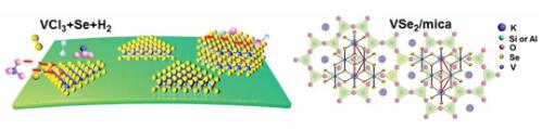 有研究者报道了通过“一步”化学气相沉积法在原子级平整的云母基底上范德华生长获得了1T相的薄层硒化钒VSe2微晶纳米片。纳米片的厚度可以从几纳米到几十纳米调整。此外研究者发现二维单晶硒化钒表现出优异的金属性,具有超高的电导率106 S/m,比其他二维材料的电导率高了1-4个量级。