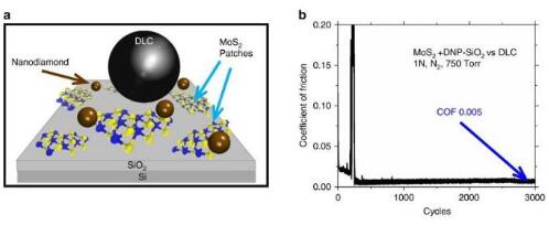 美国能源部(DOE)阿贡国家实验室的研究人员正在将纳米金刚石与二维二硫化钼层相结合在一起,并打破它们创造出一种自生的、极低摩擦的干润滑剂,这种润滑剂能持续很长时间,几乎是永久的。它拥有数百种工业用途,在任何地方,只要是金属之间存在干磨的工况条件下,都可以使用。